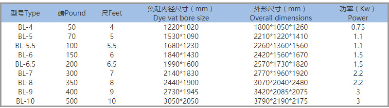 一、成衣染色、襪子染色機主要技術參數(Main Technical specifications)(S)